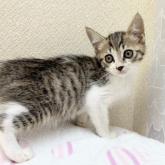 性格や特徴 1ヶ月位でセンターから引き出してきました。前回は真菌が治らず譲渡会に参加できなかったので今回が初参加となります。食欲旺盛でお目目パッチリな美猫さん。姉妹のびいちゃん同様、ハンコを押したような黒いお鼻がチャームポイントです!とても身軽で元気。いつも姉妹とにゃんプロしたり、ダッシュしたり、毎日楽しそうに遊んでいます。おもちゃで遊ぶのも大好き。人間のことも好きですが、今は抱っこされているよりは遊んでいたいようです。姉妹のびいちゃんよりは多少慎重派なところがあり、知らない猫さんなどにはシャーしたりしますが、最初だけです(笑)まだまだ小さい子猫さんなので、これからどんどん個性が出てくると思います。どんな子に育つか保護主もとても楽しみです。