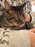 人見知りはあまりしませんが、特に男の人のお膝にちょこんと座りに行く魔性さがあります。顔見知りになると積極的にすりすり、ごろーんとし、ぐいぐいお膝に乗っちゃいます。