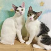 | 性格や特徴 | ◎こよい(キジ白・メス) 好奇心旺盛な女の子。おもちゃが大好きな甘えん坊。なでなでOK、お膝に乗せられます。爪切りは洗濯ネットでOK。 ◎さよ(グレー白・メス) 最初はビビリでしたが、甘えん坊になってスリっとしてくれます。 背中からなでれば、気持ちよさそうにゴロゴロします。人見知りで繊細なので打ち解けるまで少し時間がかかるかもしれません。 爪切りは洗濯ネットでOK。 ◎まほろ(グレー白ハチワレ) 優しいお母さん猫。人なれ修行中。預かり宅に来た当初は近寄るとダッシュで逃げていましたが、今は小走りで逃げながらも振り返ってこちらを見る姿が可愛いです。毎日ほんの少しずつ距離が縮まっています。 長い目で見守っていただければ、つかず離れずのちょうどいい距離感で寄り添ってくれそうです。その過程を楽しむ余裕のある方にお願いしたいです。 子猫たちは成長して親離れしているので、子猫ペアまたは、まほろちゃん単独のご相談を承ります。 子猫は好奇心旺盛で気になるものには何でも突撃するため安全対策や脱走対策をしっかりしていただける、優しいご家庭とご縁があればと願っています。 ▽預かり宅での様子はインスタでご覧いただけます https://www.instagram.com/fuku_cats/ |
