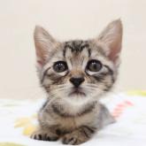 性格や特徴 人間がミルクから育てたので人馴れは抜群!4姉妹とも少したれ目でちょっと困ったお顔をしています(笑)その中でも一番困ったお顔をしているのがゼノンちゃんです。もちろん本猫は特に困っていません(笑)姉妹たちや同じ月齢の子猫たちと毎日元気に遊びまわって楽しく過ごしています。今は人間のお膝でまったりするよりも猫たちと遊んでる方が楽しそうですが、抱っこすると脱力系ででろーんと身を任せてくれます。まだまだ小さい子猫さんなので、これからますます個性が出てくると思います。どんな子に育つか保護主もとても楽しみです。