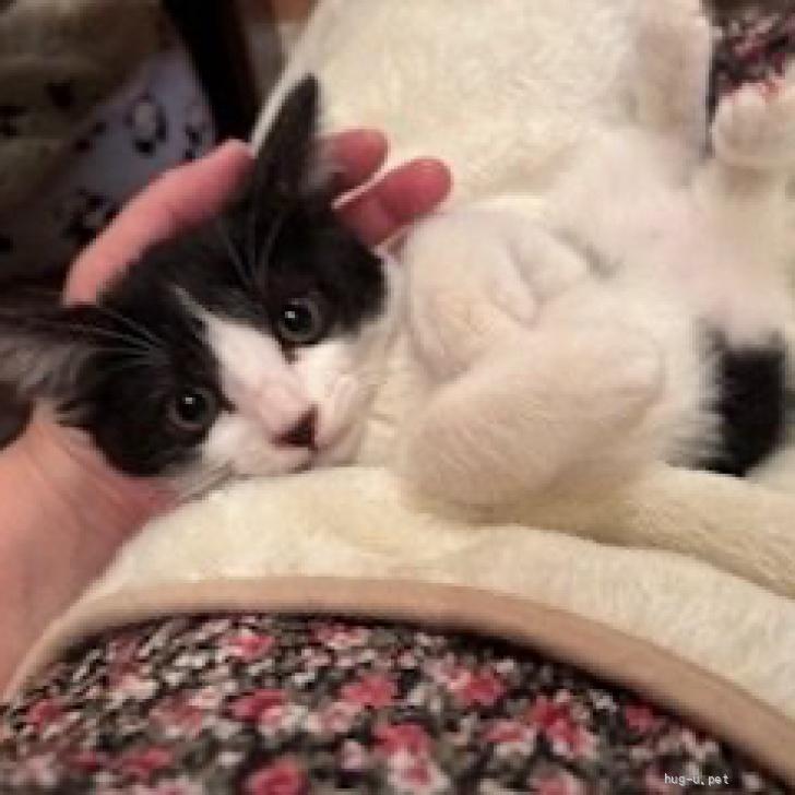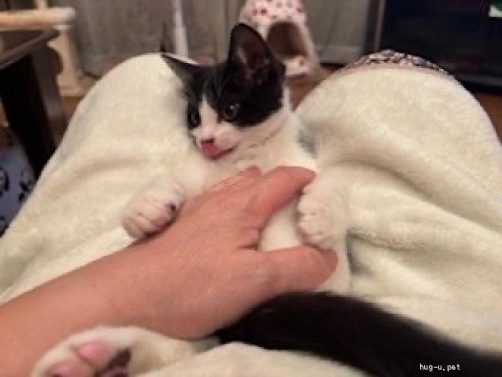 ​推定2ヶ月の白黒ハチワレ男の子です。とても大人しくて​甘えん坊で可愛いです。