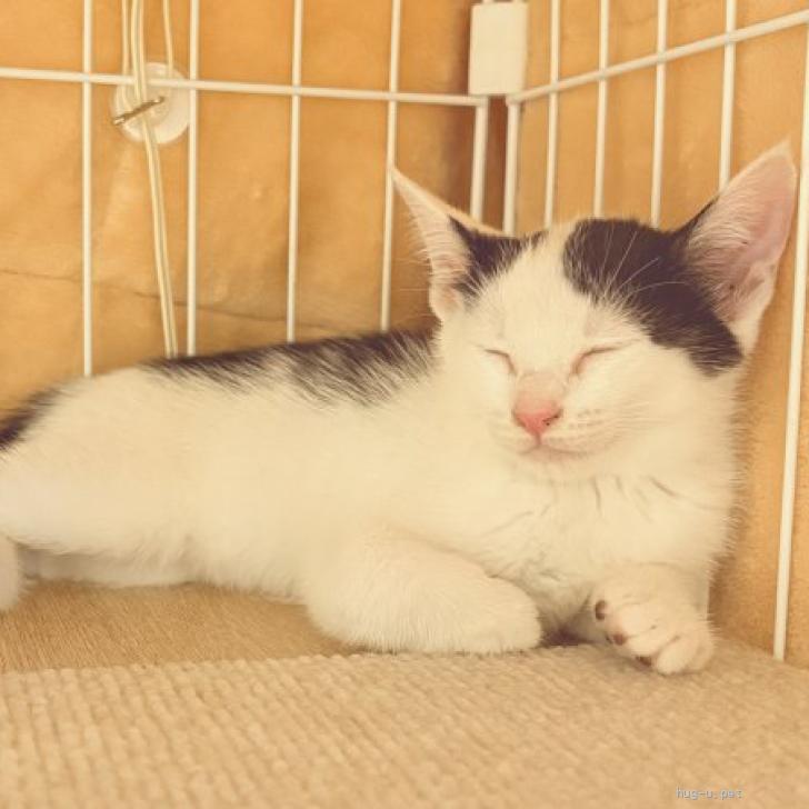 末っ子感満載で穏やかな性格ですが、遊ぶのも好きです。撫でられるのも好きで抱っこもできます。保護した時は3姉妹の中で1番小柄でしたが最近は1番ご飯を食べて元気に成長しています。