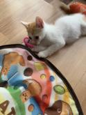 他の仔猫とも仲良くしていてニャンプロしかけらやられっぱなしのおっとりした性格です。
