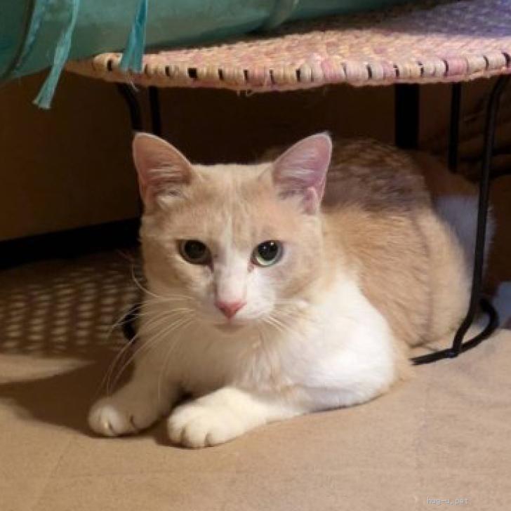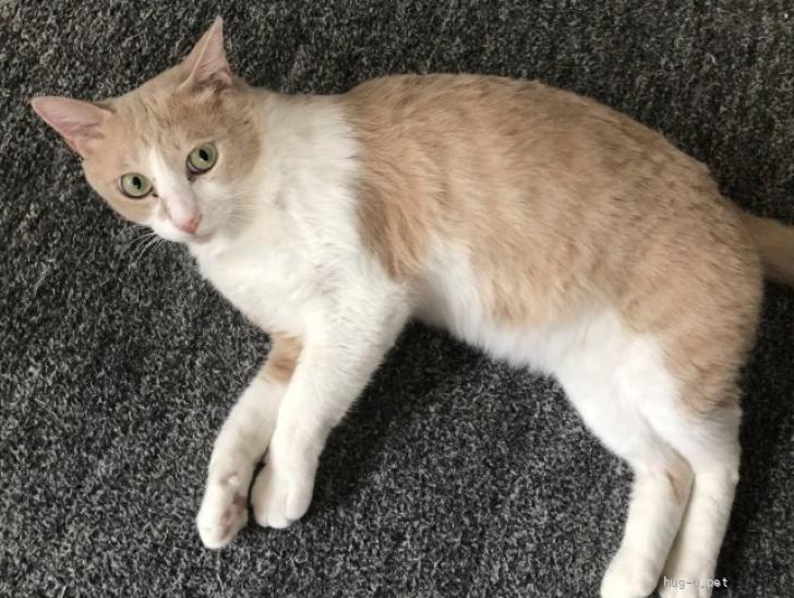 | 性格や特徴 | 仮名: アラン 推定3歳〜5歳、ミルクティ色と白の薄い色合いが綺麗なオス猫です。 一人暮らしの高齢者が一匹で飼っていたようで、他の猫との距離感、猫のルールなど社会性に難がありましたが、随分良くなりました。 しかし、アランのストレスを軽減するためには、一匹飼いがいいと思います。 だいぶ慣れてきてご飯の合図で自分からケージに入ってくれますが、基本ケージは嫌いなので、すぐに出てしまいます。 それでも我が家のルールを覚えてくれましたので、賢い子だと思っています。 |
