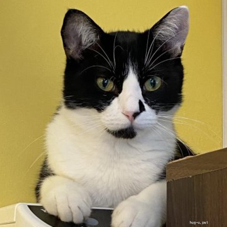 性格や特徴 綺麗な白黒のハチワレ男子。鼻の脇と顎下に黒の模様あり。