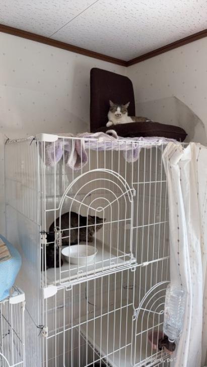 なのでまだ警戒心も強く😣ケージの1番上の段でじっと寝ていることが多いです🥺