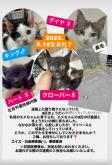 | 募集の経緯 | 生まれですぐ、へその緒がついたまま、道路にいた5匹きょうだいです。 同じ時期に仔猫を産んだ、乳母のエメさんが育ててくれました。 |