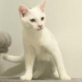 白猫に見えますが、実は頭のてっぺんだけに黒い模様があり、実は白黒猫さんなのです。