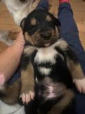 現時点での毛色はブラックタンで、胸からお腹にかけて白い毛が生えています。