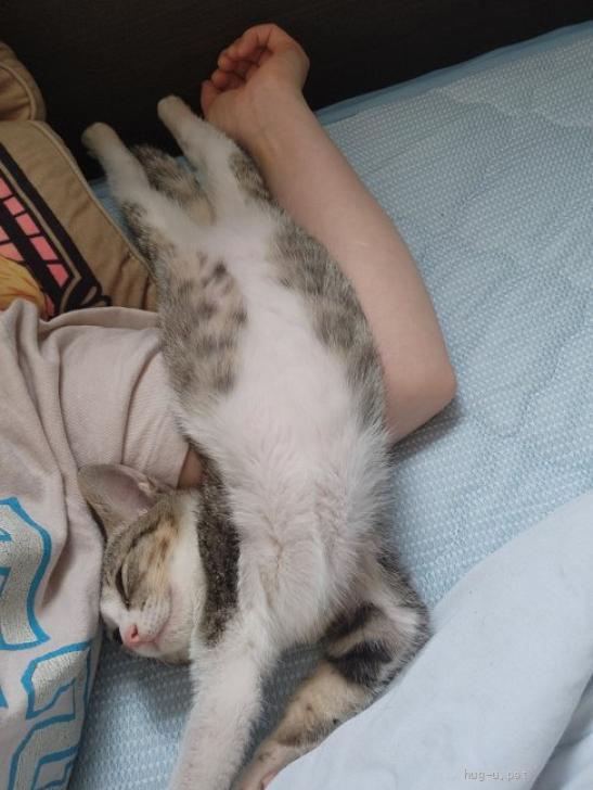 性格や特徴 やんちゃですがとても甘えたちゃんです。お腹の上や胸、顔の辺りで寝る事多いです。帰ってきたら大きな声で鳴いてかまってアピールします。(笑)遊びも上手です。他の猫にも、興味ありますが、この子はエイズキャリアな為当方の先住猫とは別けて生活してます。網越しでですが、挨拶はしているので猫同士でも大丈夫とは思いますが、人の方が好きです。