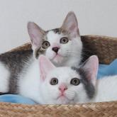 | 性格や特徴 | ◎カルミア(キジ白・オス):好奇心旺盛で、保護主宅の自分より少し月齢が上の大きな子猫ともプロレスごっこをしたりと元気です。 ◎イベリス(白グレー・オス):ちょっぴり臆病でカルミアの後ろに隠れている弟タイプです。マイペースな男の子です。 最初は人見知りして隠れてしまうと思います。オモチャで遊んだりしながら仲良くなっていってください。 ◾️未避妊未去勢の子猫の譲渡条件 1. お留守が短いこと(長くても6時間程度)※月齢によって緩和 2.日々の 体調管理 をしっかりと行なっていただくこと - 移動や新しい環境適応のストレスで免疫力が下がり、猫風邪、真菌、胃腸炎などの症状が出る場合があります。 - その場合、お近くの動物病院にご相談、治療の他、ご自身による日々の投薬やケアが必要となります。 - 上記理由から、ご家族構成、お留守時間、猫の飼育介護経験、飼育環境 などを詳しくお聞きかせください ※メスは生後4ヶ月中での避妊手術 をお願いしています。近隣の動物病院では幼齢手術をできない場合があります。 ※共働きなどでお留守番が長い方は 体調が安定し、お留守番が安心な 親子ペア または 避妊去勢手術を済ませた生後5ヶ月以上の子 がお薦めです。 ※ 猫と暮らしたことがない未就学のお子様がいらっしゃる場合、まずはアレルギー検査や猫カフェなどでの 猫と触れ合う経験 をお願いします。 その上で、猫に過度なストレスがかからないか、誤食や脱走のリスクを避けられる か、確認させていただきます。 |