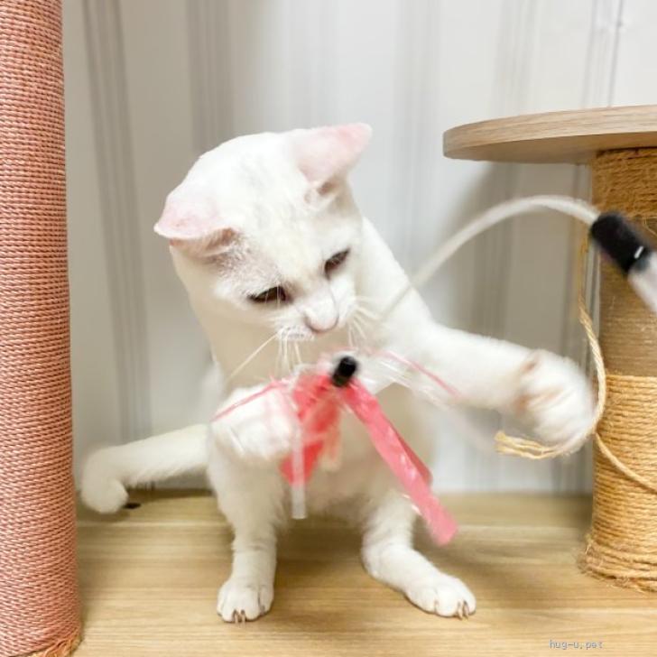 | 性格や特徴 | ◎ドナルド(白猫)オス 猫にも人にもフレンドリーなご機嫌さんです。同じ場所で保護されたデイジーさんとペアか、FIV+の先住猫さんのいるお家への譲渡を希望します。 ・おしゃべりです。あれ、クローゼットに閉じ込めてしまったかな?と思うくらい声は大きくはないのですが、ニャーニャー良く言っています。 ・遊ぶのが大好きです。同じ年頃の遊ぶのが好きな猫たちと日々ニャンプロをしています。 ・遊んでいる時に全力疾走で走ることもあります。下のフロアが気になる方は対策が必要かもしれません。 ・撫でられるのが好きです。背中を撫でるとうっとりした顔になります。 ※普段の様子は預かりボランティアのインスタグラムをご覧ください。 https://www.instagram.com/chizuureshino?igsh=ZWhla2ppYXBsZ3Q1 |