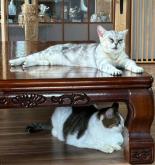 身体を長く伸ばしていつもくつろいでいます。近づくとお尻を高くあげて誘ってきます。特徴のあるお顔だちがとてもキュートです。