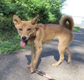 野犬の多い地域で保護されましたが、ゴハンは人からもらっていたようで保護当初から人には慣れていました。攻撃性なく、他犬とも上手に接します。