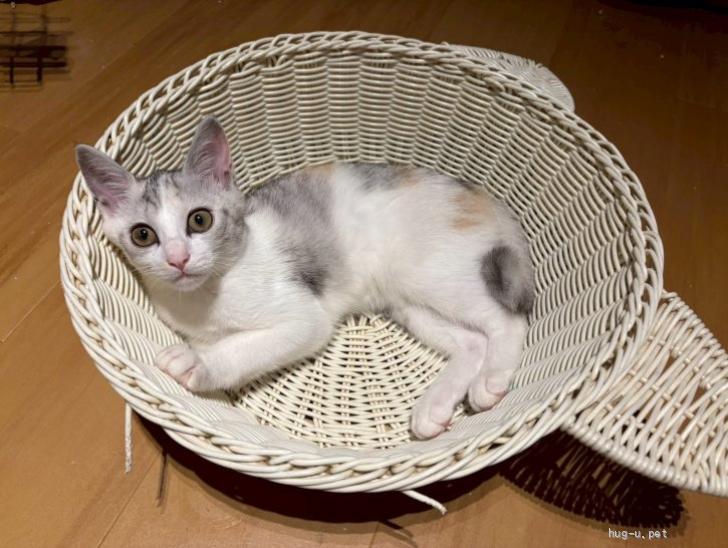 白に淡いグレーが入った美人さんで、薄茶色の模様もありパステル三毛のような上品な雰囲気。