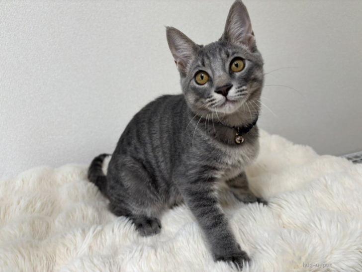 性格や特徴 元気いっぱいな兄妹たち。グレー色にうっすら縞柄があるような濃いサバトラ柄のような不思議な毛色です。控えめな男の子です。