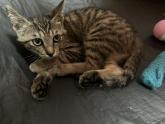 募集の経緯 子猫が道路を走り回っていて危ないと保護依頼があり、餌やりさんのお宅のママ猫はTNRし、子猫は保護しました