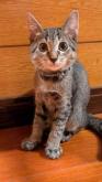 性格や特徴 焦げ茶のキジ模様で、瞳は綺麗な琥珀色です。