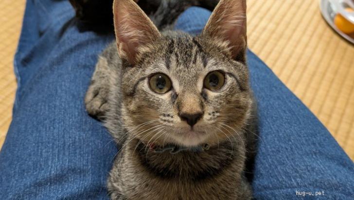 性格や特徴 焦げ茶のキジ模様で、瞳は綺麗な琥珀色です。