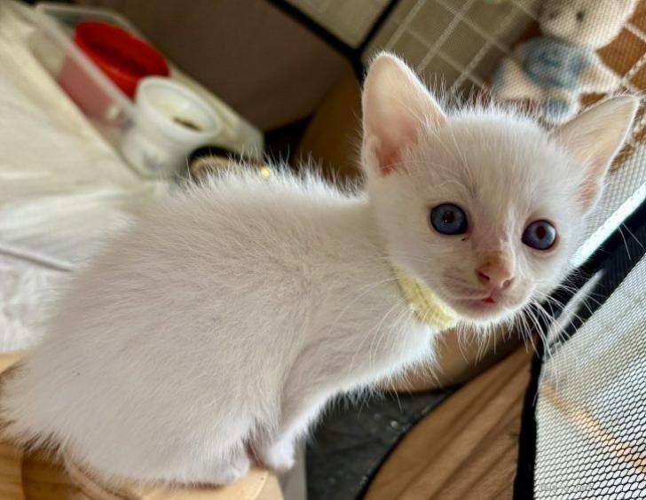| ペットの名前 | 青目 真っ白 シャムミックス男の子 1ヶ月半 | ||