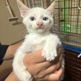 白猫かと思いきや、お耳や尻尾などいずれ茶色が濃く出てくるかもしれません。青い目のイケメンくんです🩵