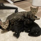 | 性格や特徴 | <ママ> あさ:妊婦さんで保護されたあさちゃんですが、パソコン中に机に乗って来たりして、飼い猫かと疑うレベルで人馴れしています! <子猫たち> ひる:オス、アメショ柄 ゆう:メス、ブラックスモークタビー、鍵尻尾 よる:メス、黒、尻尾まっすぐ |