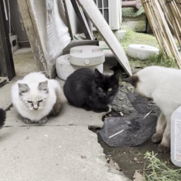 知らない人が近寄ると逃げるため画像が少ないのですが、三毛シャム柄、黒がいます。