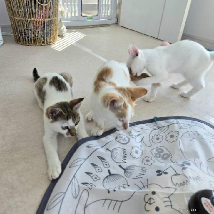 募集の経緯 夜遅く家の前に不審な車が来ていたと家族に教えられた次の日、子猫が捨てられていました。夕方道路脇にいた所を保護し病院へ生後2ヶ月、1日飲まず食わずでよく頑張りました。家から7㎞離れた地区の方に預りをお願いしたところ娘さんがそっくりな猫を見たことがあると言うことで確認してくれ、猫嫌いのおばあさんが3匹居た子猫のうち1匹だけ捕まえたので知り合いに捨ててきてもらったと言う経緯で元居た場所が分かり、残りの2匹も捨てられないうちにと保護、無事に兄弟再会でき里親さんを募集する事になりました。