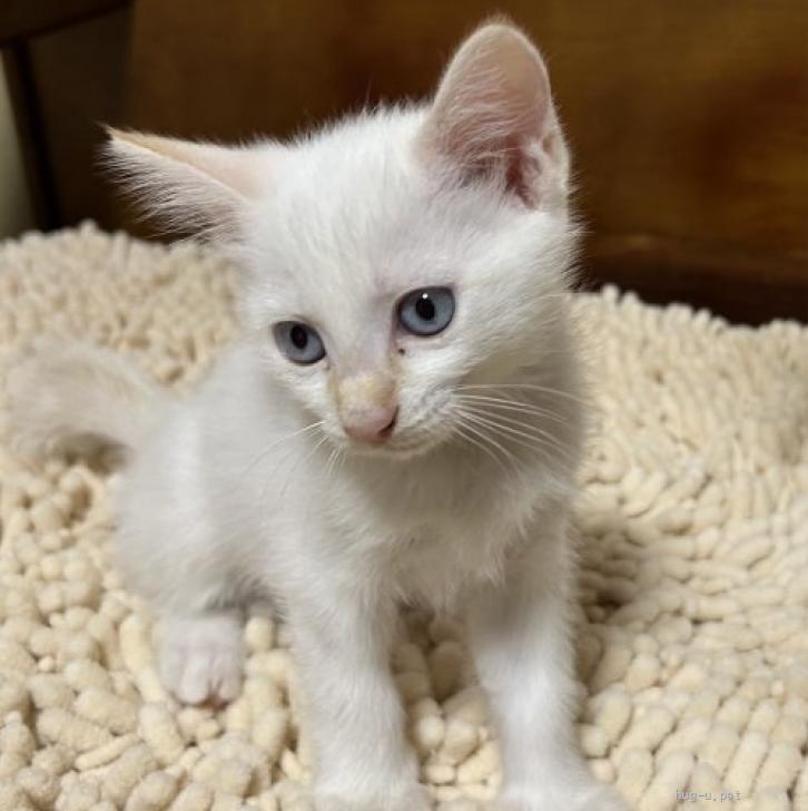 性格や特徴 7頭の子猫が生まれ(室内で出産)、そのうちの4頭が白系統、キジ2頭、茶トラ1頭でしたが、白4頭は生まれたときは、皆真っ白でしたが、育つにつれて色味や柄に違いが出てきました。この個体は、白系統4頭の内、白の猫です。ただし、写真を注意深く観察すると薄い虎模様が一部入っているのかもしれません。他の白系統ネコ3頭は、耳に黒のアクセントがありますが、この猫は耳も白い。