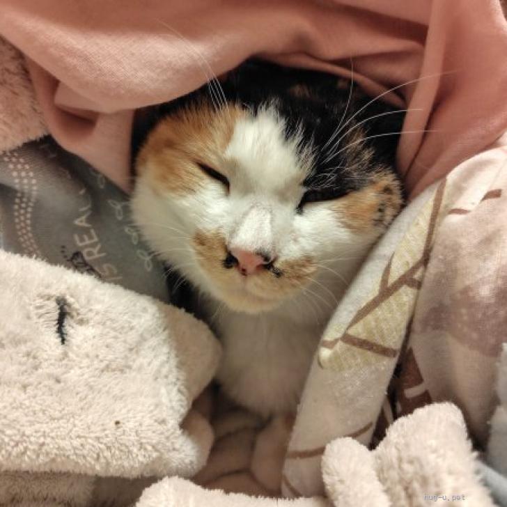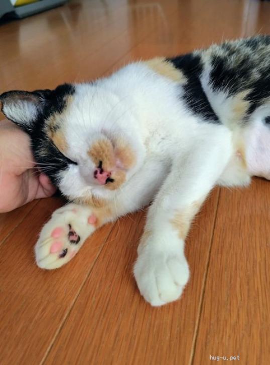 見ての通り、鼻毛出てますよ!?と言いたくなるような愛嬌のあるお顔の三毛ちゃんです。このお顔にビビッときた方、甘えん坊なこの子を思う存分甘やかしてくださる方、我こそは!と大きな気持ちで受け止めてくださる方、ぜひ家族に迎えてあげてください。よろしくお願いします。