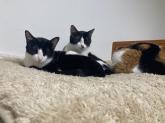 新入りの保護猫ちゃんにも自分からちょっかい出しに行ってます。