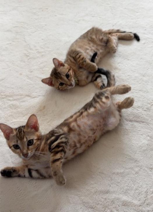 | 性格や特徴 | 3ヶ月の女の子。 特徴的なベンガル風の柄がとてもきれいです。 性格は甘えんぼで、人にもすぐ慣れて抱っこが大好き。 姉妹と仲良く遊ぶ姿もほほえましく、 一緒にお迎えいただけたらうれしいですが、 この子だけでも大歓迎です |