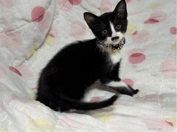 性格や特徴 穏やかな兄妹たち。唯一無二の白黒柄です。ヒゲダンスのようなヒゲ柄はチャームポイントです。子猫らしく元気いっぱい遊んで食べて寝て過ごしています。