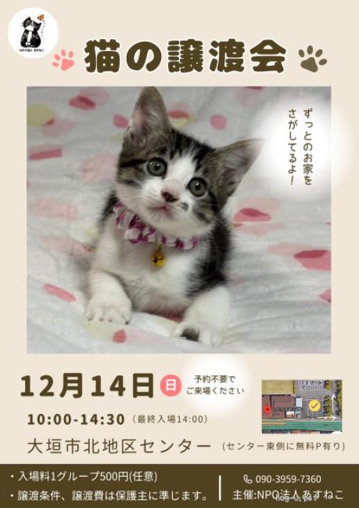 こんにちは、NPO法人あすねこ。です。保健所からの殺処分対象の猫(産まれ間もない赤ちゃん)をレスキューしてミルクで二ヶ月以上育て里親募集をしています。また、不幸な命を産ませないためにもTNR活動も推進しています。
