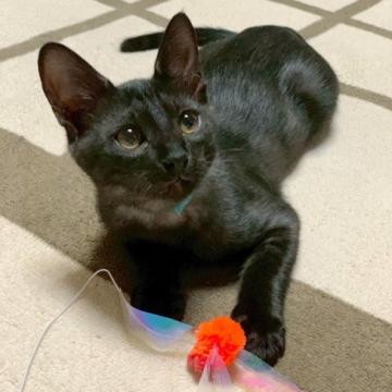 性格や特徴 ブラックスモークの毛並みがつやつや輝く、兄妹の中でいちばん小柄な男の子♡