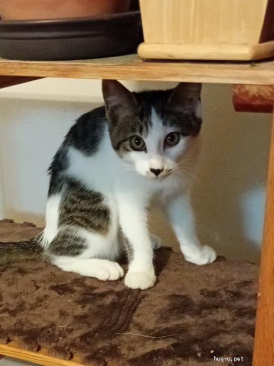 | 性格や特徴 | ※必ず「応募条件」も最後までお読みください※ ・保護日2025年10月13日 当時弱冠3か月齢 ・ごはんを食べるときにうみゃうみゃ言うときがあります ・人慣れ、犬慣れ修行中ですがほぼ大丈夫の域です ・他の姉妹に比べて、ツン多め ・なかなか撫でさせてもらえませんが、ナデナデは大好き ・特徴的なお顔と模様がクセになります ・人のふくらはぎに勝手に喧嘩を売ってきてサンドバッグにします ・ご飯は、他の姉妹よりも格上のごはんを要求します(もちろん無視しますが) ・警戒心高め女子のため、とりあえず「うー!」「しゃー!!」あるも興味もあり、そっとタッチしてくれます ・遊ぶのは大好き。怖がりだけど意外と勇敢でもあります ・夜はケージ内で姉妹と眠ります ・毛足が姉妹の中では長めの柔らかめ、耳の先端でツン立つ毛がチャームポイントです ・白色の多いキジ白で、ブチ模様が個性的(向きによってはブチがハートにみえることも) ・足は全て真っ白ですが、左後肢の1本だけ色模様があります ・しっぽはまっすぐ長め ・まつ毛が長くて美人です ・姉妹で暮らしているので、一人っきりになると夜泣きなどの問題が発生する可能性があります |