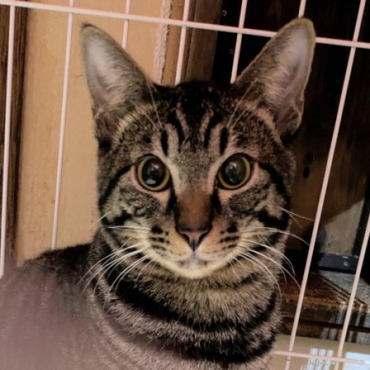 お顔は面長、たらこ唇、一度見たら忘れられない可愛いキジトラ男子です。