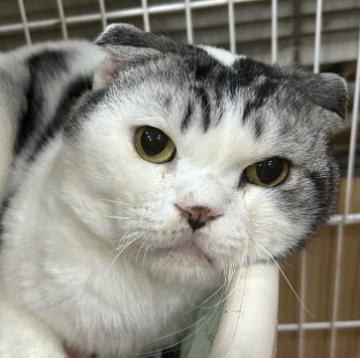 | 性格や特徴 | 鼻の黒い模様が可愛くクセになるお顔な折れ耳スコティッシュです 比較的大人しいです、見た目の貫禄はありますが意外とサイズは大きくありません 少しだけビビりですが甘えん坊です 撫でられるの好きです!撫でてほしくて寄ってきます 抱っこも出来ます 他の猫はあまり好きではないのと、接し方が下手っぴです 先住さんは女の子であればおそらく大丈夫です |