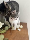 募集の経緯 放置された車の中で生活していた猫の群れに、頑張って2匹で育っていました。母猫は手術し、子猫たちはまだ1キロに満たず、これから寒くなる環境がかわいそうで保護しました。まだ少し慣れていませんが、抱っこしたらゴロゴロなので兄妹で募集します。