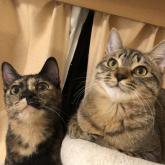 | 性格や特徴 | 初心者でもお留守番があっても飼いやすい、性格の違うペアです。 2匹ともお遊びが大好きで、紐、羽タイプに飛びつきます。2匹で走り回ったり、にゃんプロをしたります。 ◎りお(キジトラ) ジィーっと見つめる眼差しが魅力的。静かですが、凛とした存在感があります。キジトラ、尾長。 勝気なところもあり、嫌なことがあると唸って抗議します。 ◎ともえ(サビ) スリゴロな女の子。誰に甘えたらよいかを瞬時に判断したり、ご飯に真っ先に飛びついたりとかなり賢い。 起きている時はいつもウロウロしています。 サビ柄で、鼻から口元と胸元が黒と茶の非対称性。前足と後右足は黒いソックスを履いたよう。尾長、先端3~4㎝で緩く曲がりあり。 なでなでされるのが大好き。お膝に乗ってきます。 ともえとりおの普段の様子は、預かりボランティアのインスタでも見ることができます。 https://www.instagram.com/hu31lin/ |