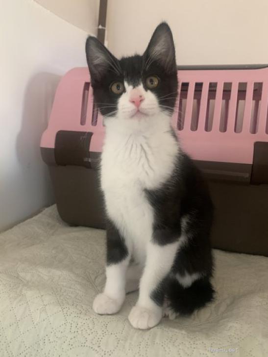 性格や特徴 変わったハチワレ風の白黒猫ちゃんです。