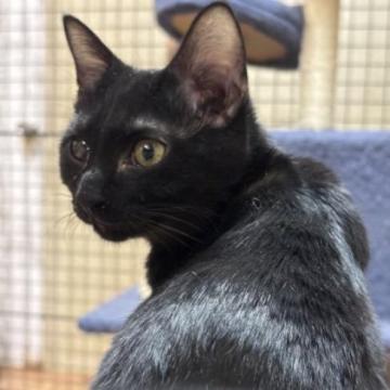 性格や特徴 黒猫の男の子で、兄妹と同じくらい元気に動き回る子です。少し落ち着いたところがありお利口さんです。見た目はクールですが、人にはよく慣れていて社交的な猫ちゃんです。