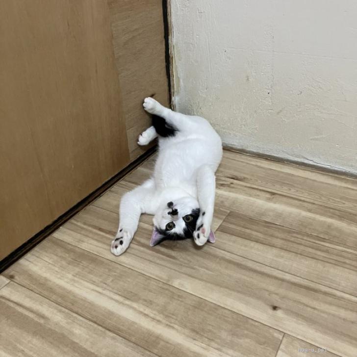 ケージの中ではゴロゴロ喉を鳴らして、コロンとお腹を見せてくれますがケージの外はまだ少し怖いようで、距離を取りがちですが背中をちょんちょんして来たり好奇心の強い子です。