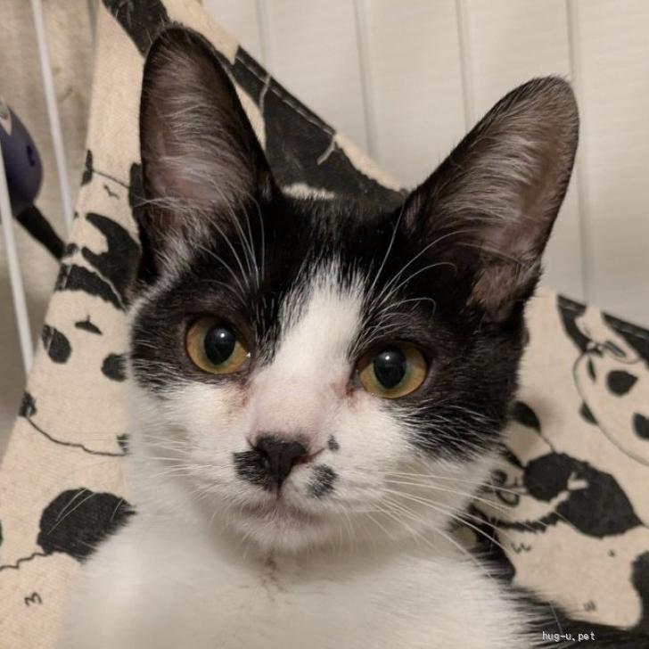 | 性格や特徴 | 瞳の色:茶色 尻尾:長くて先が少しカーブしています 体重:1.63kg(2026年1月12日現在) 性格・特徴: 海ちゃんは一見、ハチワレのように見えますが、右耳のところに白いラインが入っています。 お鼻の周りの黒いチョンチョンもとてもユニークで、決して美形ではありませんが、愛嬌たっぷりのかわいこちゃんです。 産まれてからすぐにきょうだい全員が風邪をひき、代わる代わる片目が目やにでふさがってしまう毎日でした。 ママ猫の威嚇がひどく、まったく触れなかったので、赤ちゃんたちの治療はほとんどできずじまい。 特に海ちゃんはずっとお目目がショボショボで、まぶたの癒着が残ってしまうのではないかと本当に心配しました。 ママ猫をリターンした後、やっと風邪の治療を開始したところ、何とかまぶたの癒着は回避でき、つぶらなお目目になってきました。 性格的にはママ譲りの怖がりなところがありましたが、だんだんと人馴れしてきて、ケージの中から手を伸ばして、人の手を引き入れようとします。 そして手をなめたり、甘噛みしたりと、遊んでほしくて仕方がない様子。 なかなかケージから出して遊ばせてあげることはできませんが、出た時には男の子たちと対等に追いかけっこやにゃんプロを楽しむお転婆さんです。 子猫期は社会性を学ぶ時期なので、必ず複数飼いをお願いします。 きょうだいをはじめ、ねこ窓ハウスで保護されている同じくらいの月齢の子と一緒にお迎えください。 |