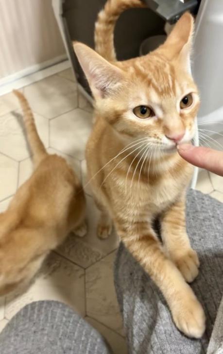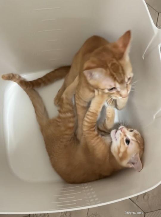 | 性格や特徴 | とても活発で、元気な子です。 人も好きでお膝にのってきます。 慣れた大人猫さんには甘えに行き、一緒に寝たりもします。 羽のオモチャが大好きで、ウーウー言いながら持って行こうとします😆 アビシニアンのような体に縞模様のない珍しい毛色です。 (将来的にに毛色が変わる可能性もあります) 経済的に許すならば、きょうだいの穂花ちゃんと一緒のお迎えをお願い致します🙇♀️ |