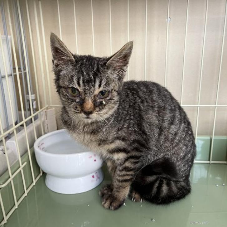 募集の経緯 猫風邪が酷く、体もきょうだいと比べてひと回り小さく、この子だけでも保護してほしいとのことで保護されました。