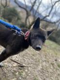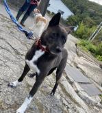 黒毛甲斐犬のような毛色に、胸や足先の白い被毛が特徴的なネロちゃんです。