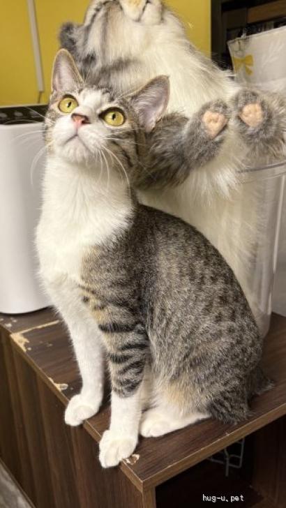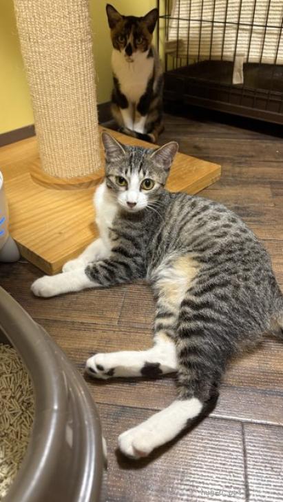 短いしっぽが特徴的で、他の猫たちと元気に遊び回り元気です。