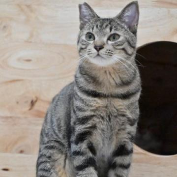 丸いお顔がキュートなキジ柄の男の子です。まだまだ子猫なのでよく遊びます!他の猫とも問題なく仲良くできます♪人にもだいぶ慣れてヨシヨシできます!