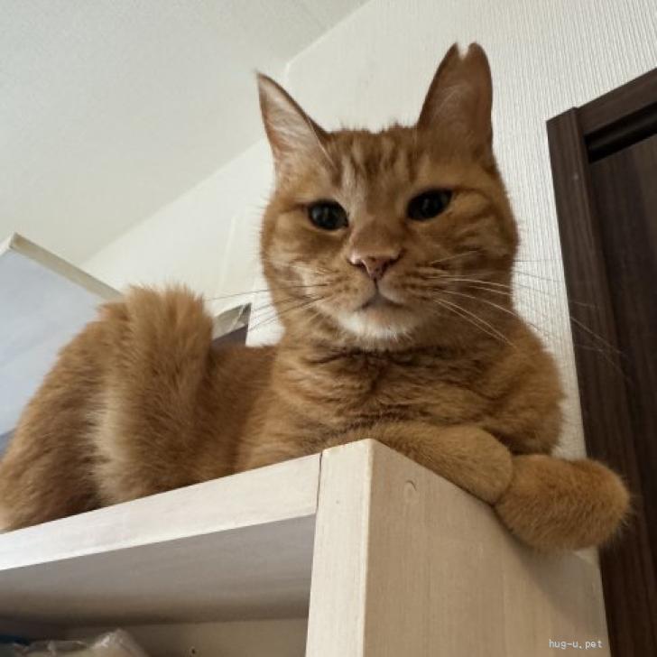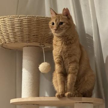 ごま柄の四角いお鼻とつぶらな瞳、そしてすらりとした長い尻尾が魅力的な、可愛らしい小柄な茶トラの女の子です。